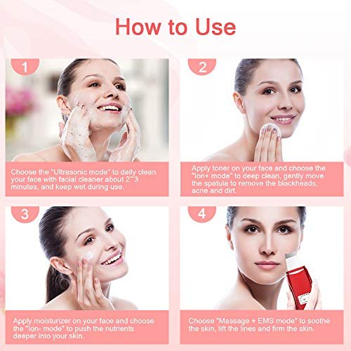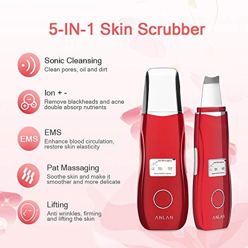 ANLAN Peeling Ultrasónico Facial, 5 Modos Skin Scrubber, Limpiador de Poros, Exfoliante Facial y EMS Cuidado de la Piel…